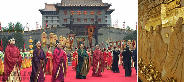 2015年5月14日,中国政府在西安古城永宁门,用仿唐式迎宾礼迎接印度总理莫迪,打破了几十年来的常规外交礼节,吸引了全世界的目光。在一片聚光灯笼罩的古色古香之下,西安地铁二号线永宁门站,以唐代迎宾图为题材的大型浮雕壁画,与锣鼓欢声的场面默默呼应,诉说千年历史的复兴之旅。