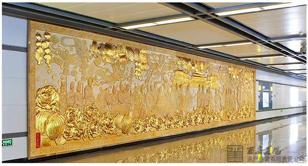 永宁门不仅仅是西安的南大门,也是中国通向世界的大门。如今,“一带一路”像东风吹起,传播着中国的富强与和平,又像一条复苏的巨龙,见证着中华民族的腾飞。永宁门站文化墙,是西安美术学院资产公司负责策划,并由彭程、任焕斌、李路葵教授共同设计完成的作品。学院以丝路为起点,通过艺术的方式,展现古城独有的特色,承载古今,面向未来,用自身的文化寓意天下复兴与永宁。